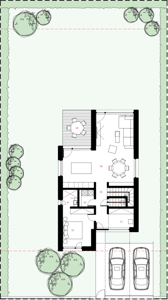 Záhrada – základná výsadba tieniacej zelene a oddeľujúcej zelene, ornica bez uloženia trávnika